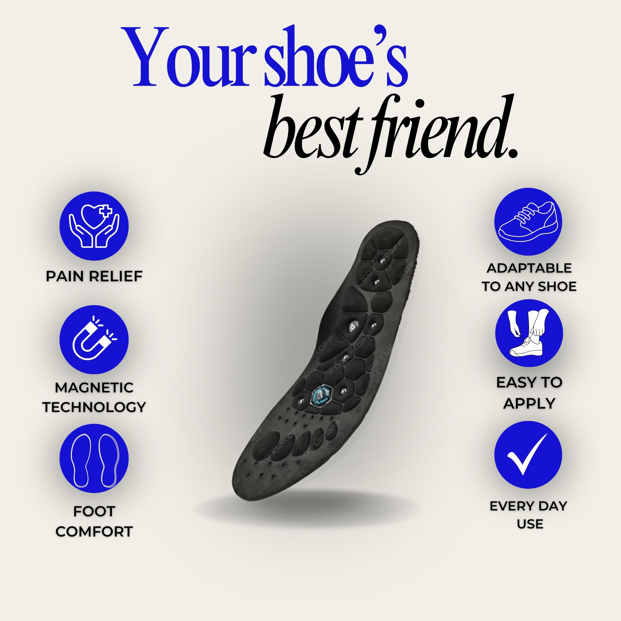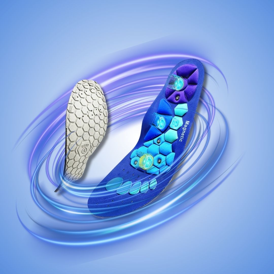 Our insoles are made with soft, breathable polyester and built-in magnetic nodes that target key pressure points. Their acupressure design supports your arches, boosts circulation, and eases foot tension for lasting comfort and relief.